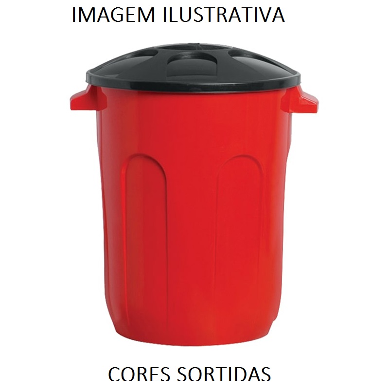LIXEIRA 60L PLASTICA REDONDA S/PEDAL C/TAMPA CORES SORTIDAS JAGUAR