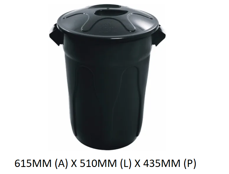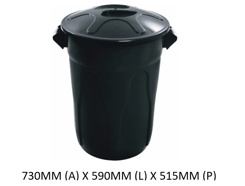 Lixeira 100L Plástica Redonda s/Pedal Preta